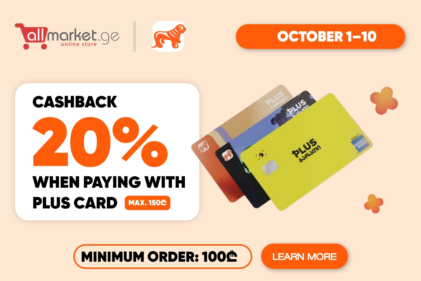 Allmarket.ge x PLUS Card - 20% cashback on any purchase (October 1-10)