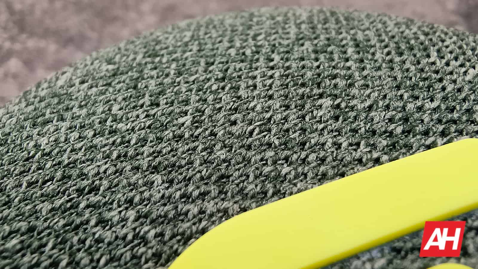 თასმა დამზადებულია სქელი, მჭიდროდ გადახლართული ქსოვილისგან, რომელიც აშკარად გამძლეობაზეა გათვლილი — იგრძნობა, რომ სხვადასხვა პირობასა და დატვირთვას მარტივად გაუძლებს. ის მყარად არის ჩამაგრებული დინამიკის ორმაგ სტრუქტურაში, რაც გამორიცხავს შემთხვევით მოშვებას ან გარღვევას.