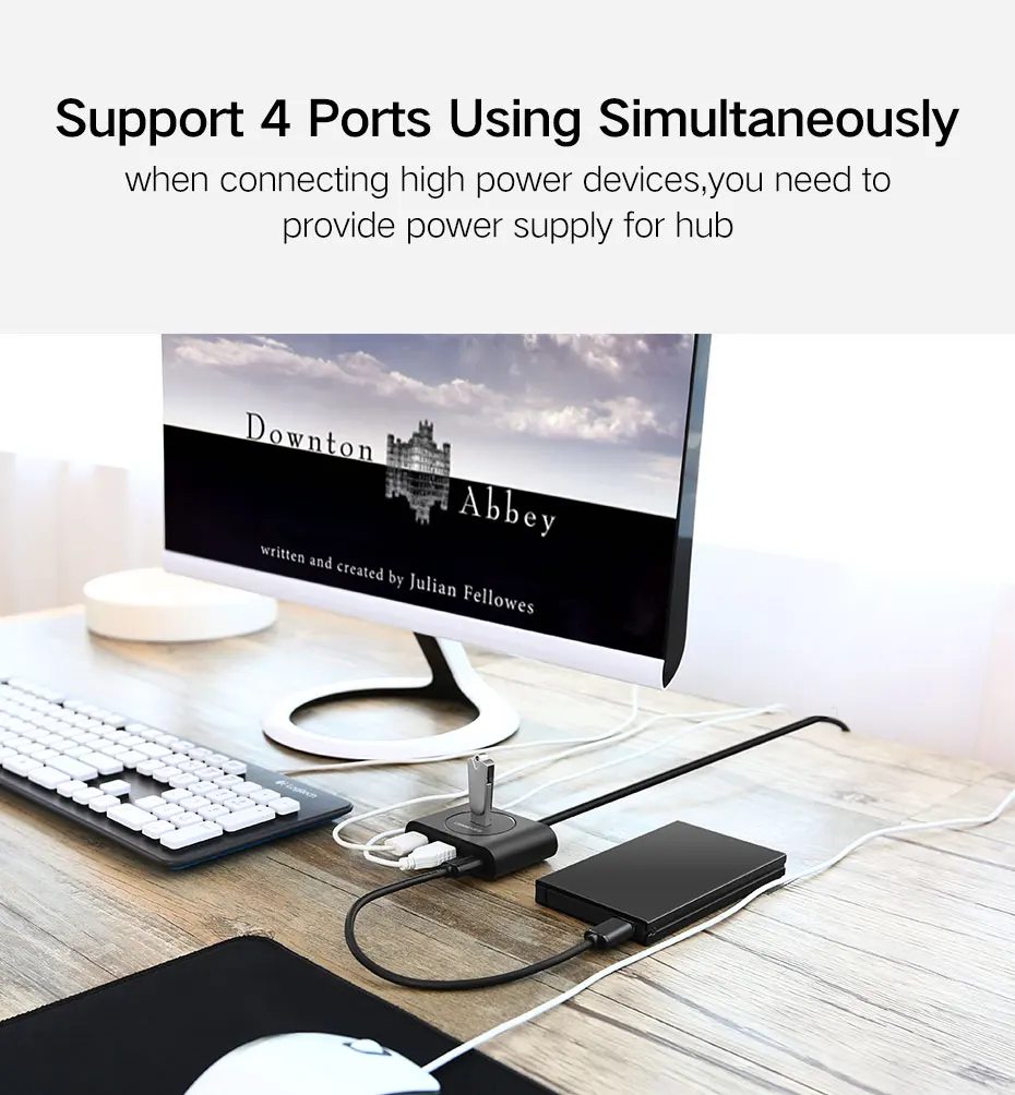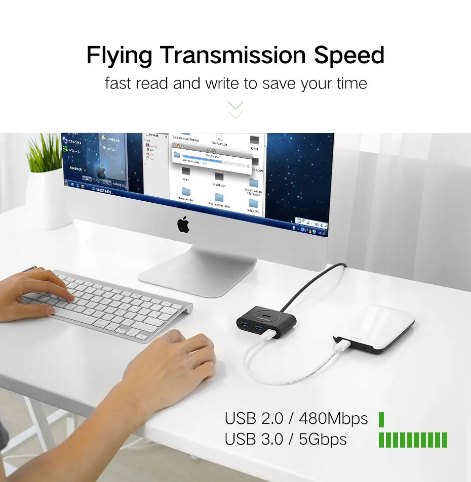 USB ჰაბი UGREEN CR113 (20283) NEW USB 3.0 4 Ports USB Hub with 2.0 OTG  White 1M