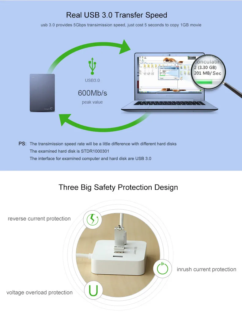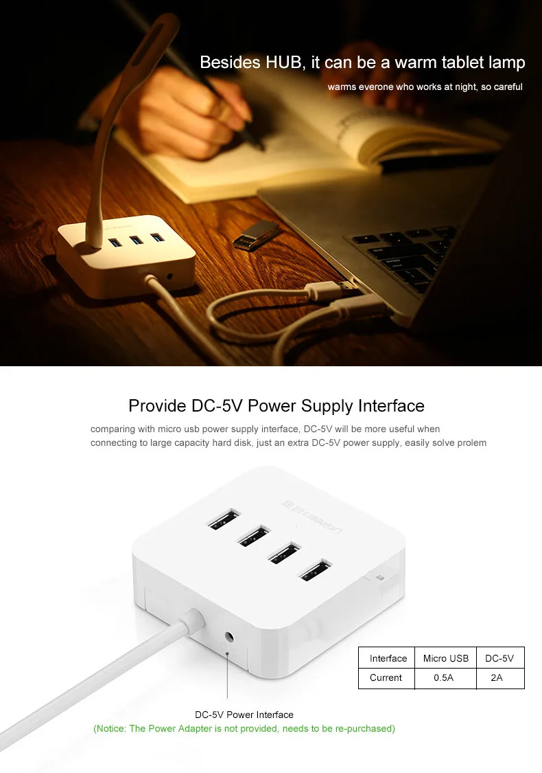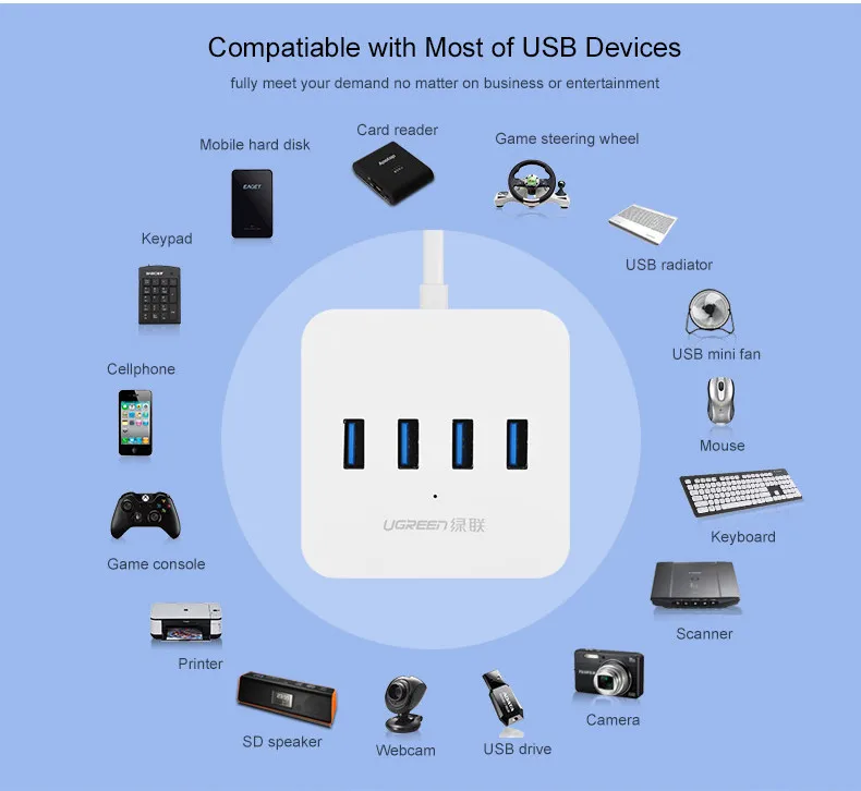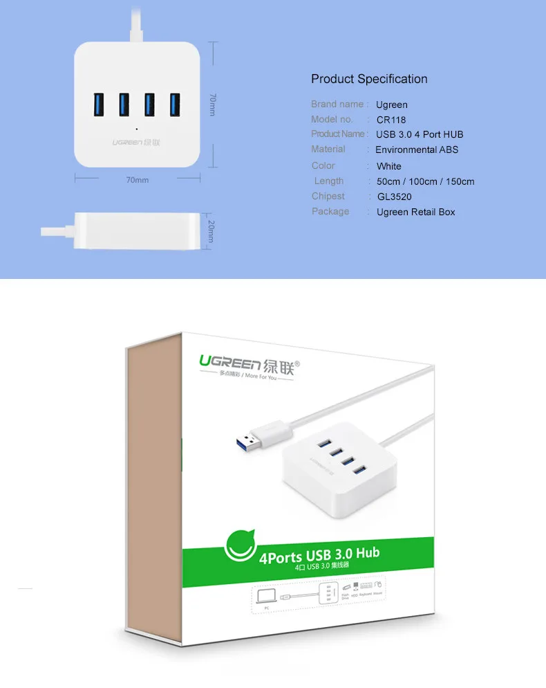 USB ჰაბი UGREEN CR118 (30202) Hub USB 3.0 Ugreen 4 Ports High Speed 5 Gb usb hubs 1M