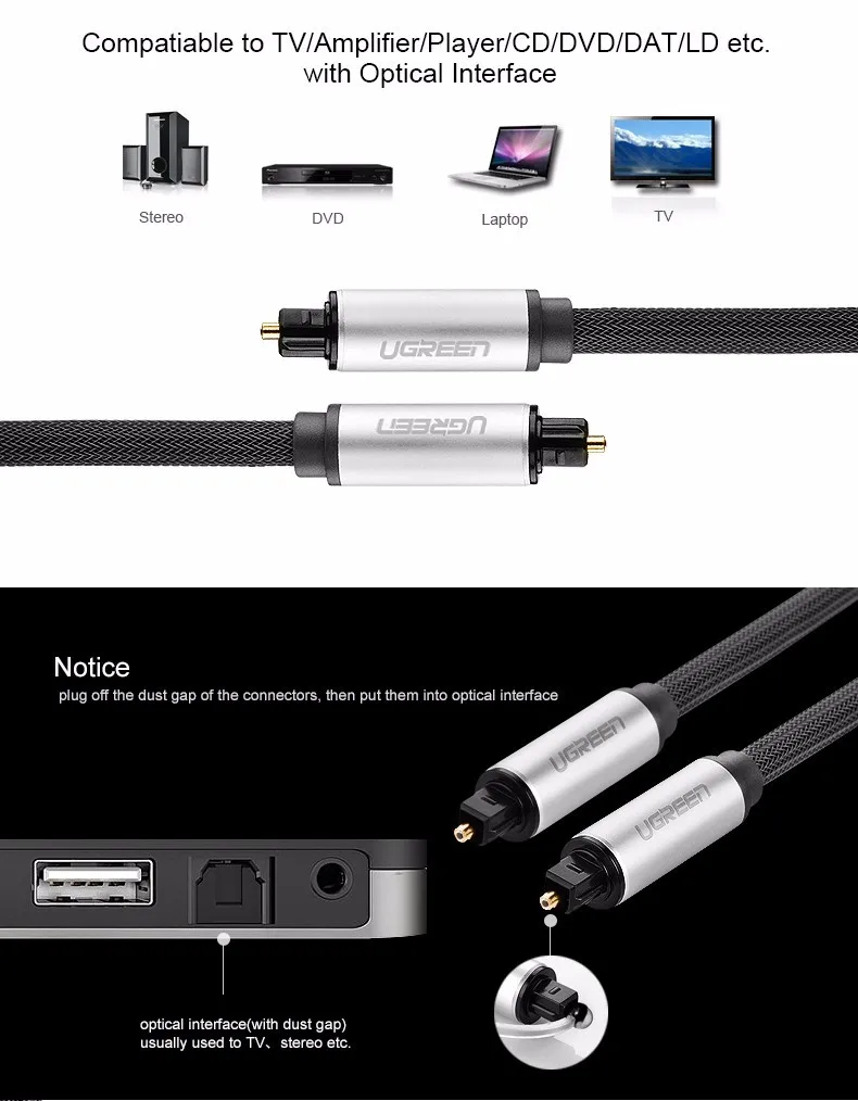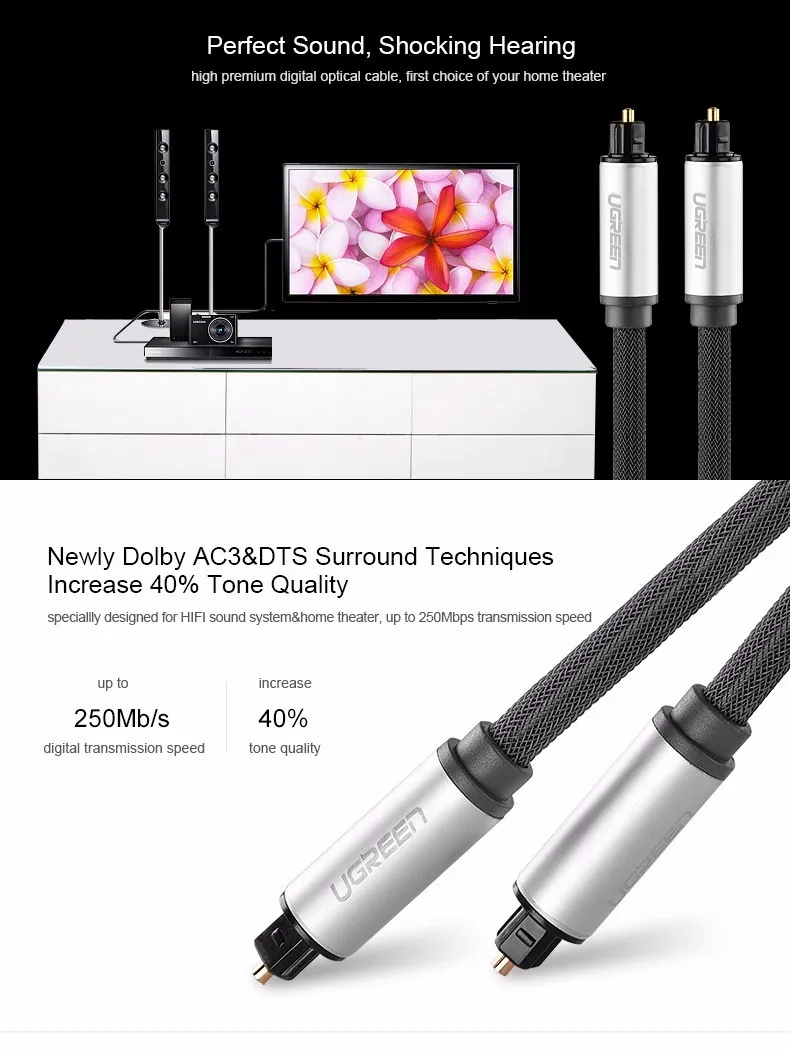 ოპტიკური აუდიო კაბელი UGREEN AV108 (10541) Toslink Optical Audio Cable 3m