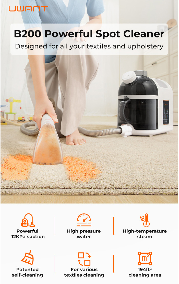 ქიმწმენდის აპარატი+ორთქლის უთო Uwant B200, 500W, 1.5L, Multiple Spot Cleaner+Steam Iron, Grey