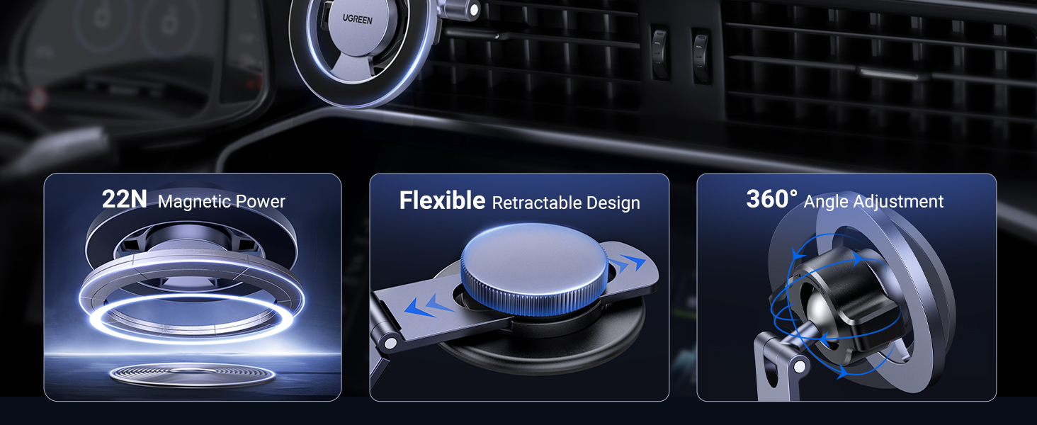 უსადენო დამტენი UGREEN CD345 (15120), 15W, MagSafe Magnetic Car Charger , Black