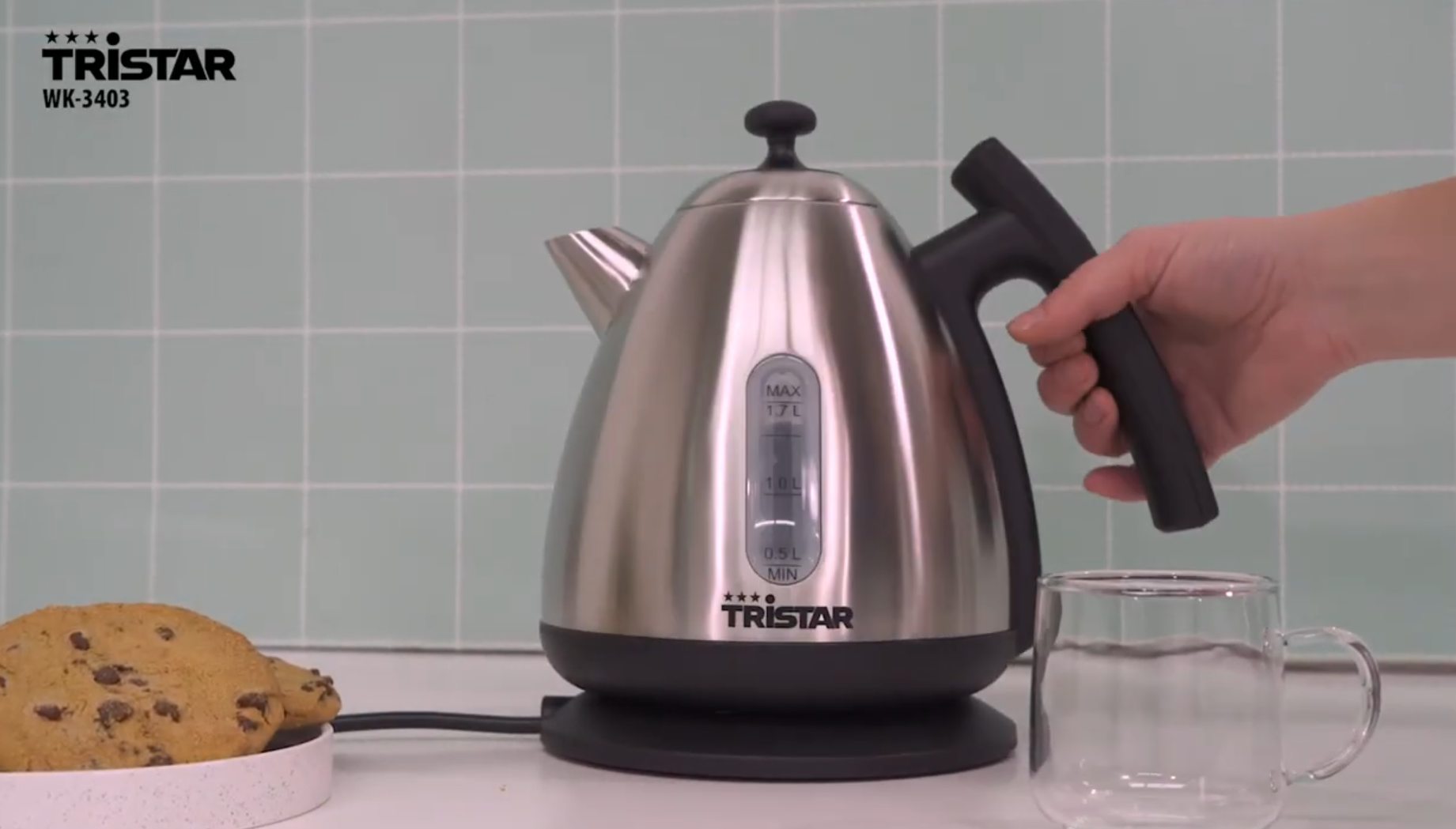 ელექტრო ჩაიდანი Tristar WK-3403 Digital, 2200W, 1.7L, Electric Kettle, Silver