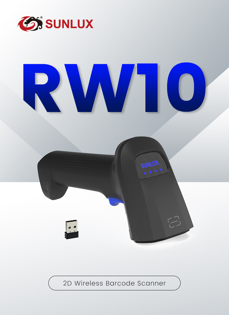 ბარკოდის სკანერი Sunlux RW10, Bluetooth, USB-HID, USB-VCP, Barcode Scanner, Black