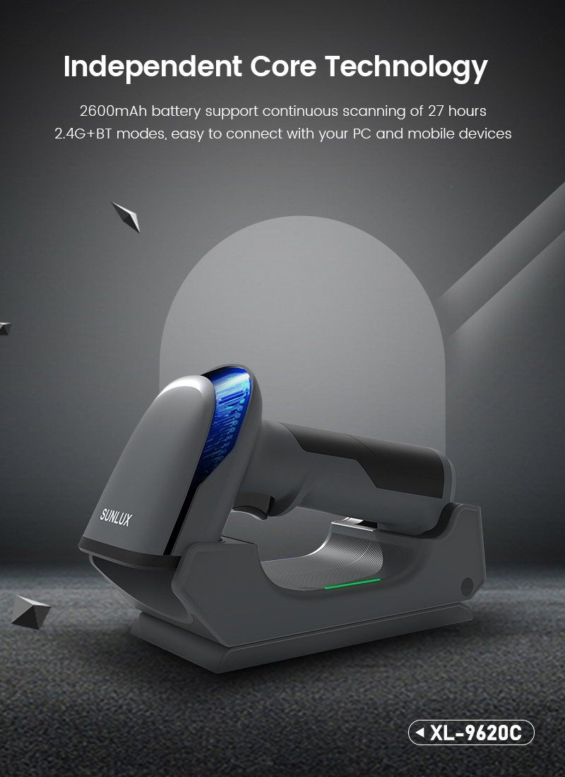 ბარკოდის სკანერი Sunlux XL-9620C, Bluetooth, USB, USB-VCP, Barcode Scanner, Black