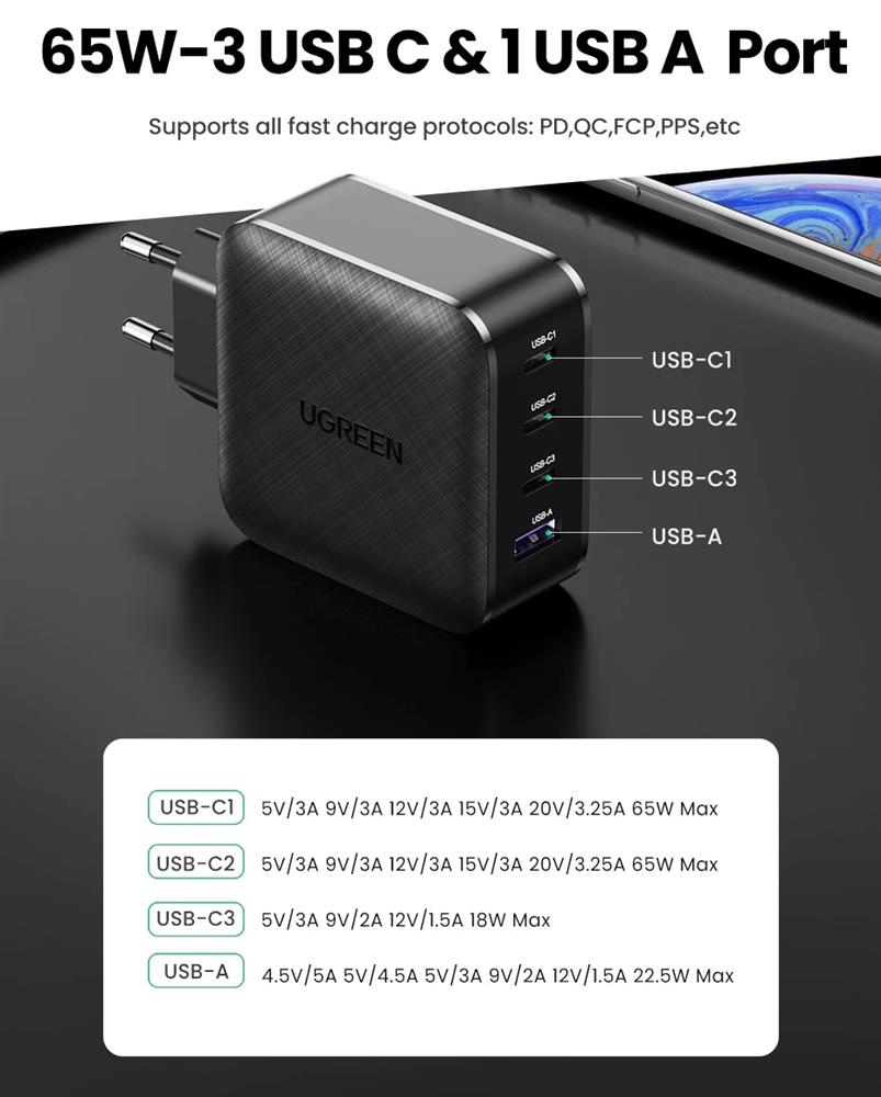 Wall Charger, 65W, 3xUSB-C, USB-A, GaN, Black2222.jpg)