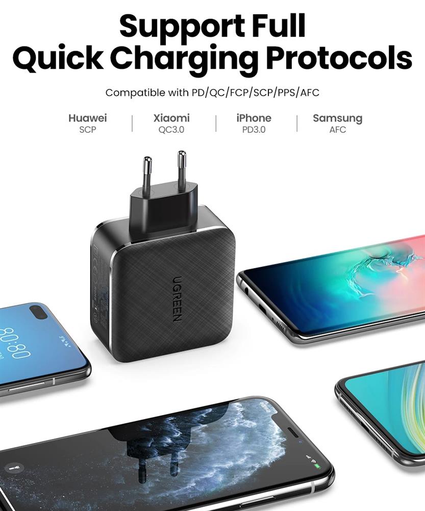 🔋 სწრაფი დატენვის პროტოკოლები: PPS, PD3.0, PD2.0, QC4+/QC4.0/QC3.0/QC2.0, AFC, FCP, sCP, sFCP