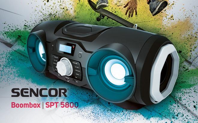 აუდიო სისტემა Sencor SPT 5800, 25W, FM, CD, BT, MP3, USB, AUX, Boombox, Black