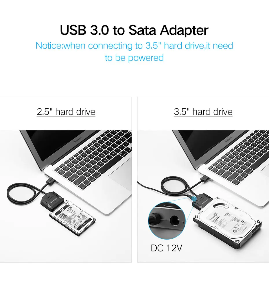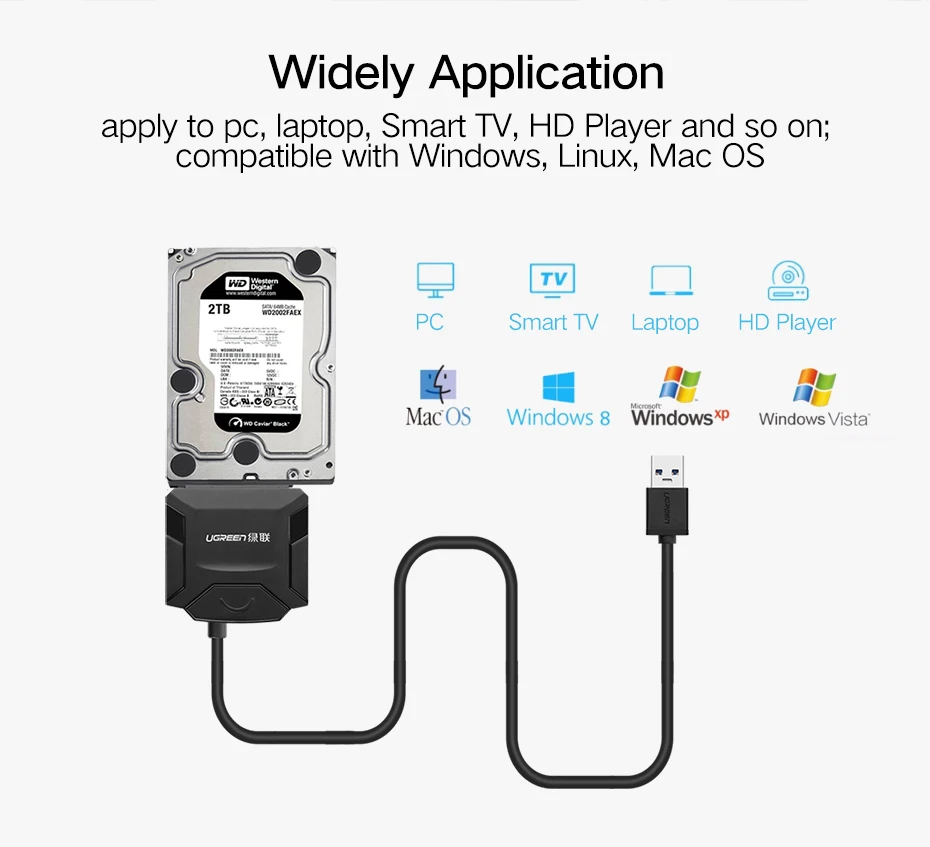 მყარი დისკის  წამკითხველი UGREEN CR108 (20611) USB 3.0 to SATA Hard Driver converter cable with 12V 2A power adapter 50CM